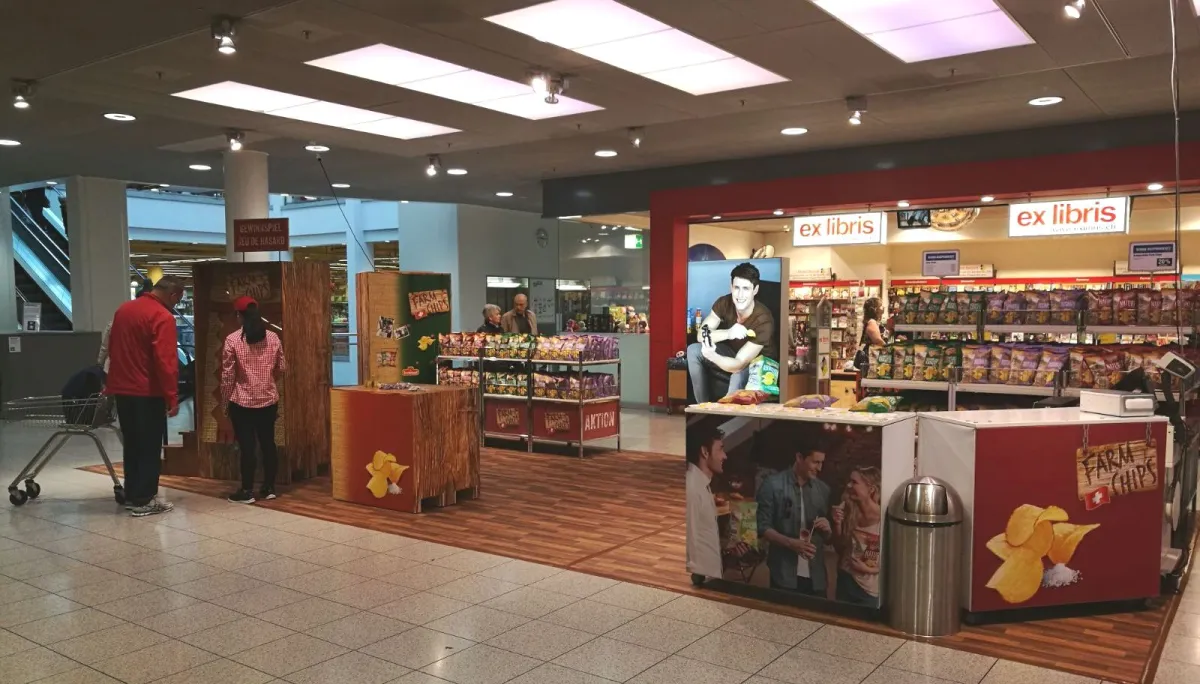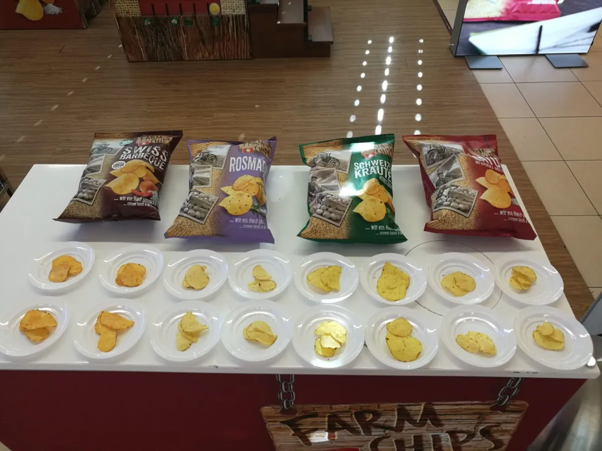 Für den Kunden, die Firma Bischofszell Nahrungsmittel AG unterstützen wir bereits seit 6 Jahren mit grossem Erfolg die Marke Kult Ice Tea bei Mall-Events. Wir sind überglücklich, dass mit Farm Chips nun eine weitere Marke dazukommt.