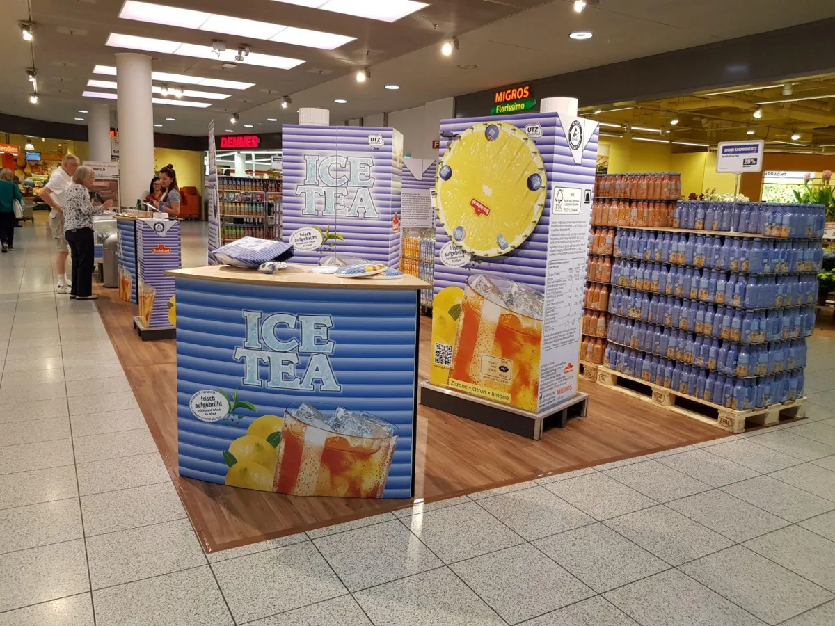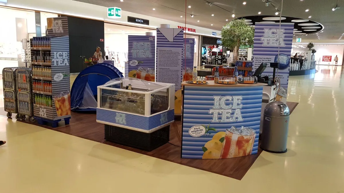 Seit mehr als 6 Jahren unterstützen wir unseren Kunde die Firma Bischofszell Nahrungsmittel AG bei der Organisation und Ausührung von nationalen Kult Ice Tea Mall-Events.