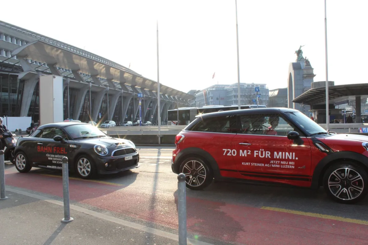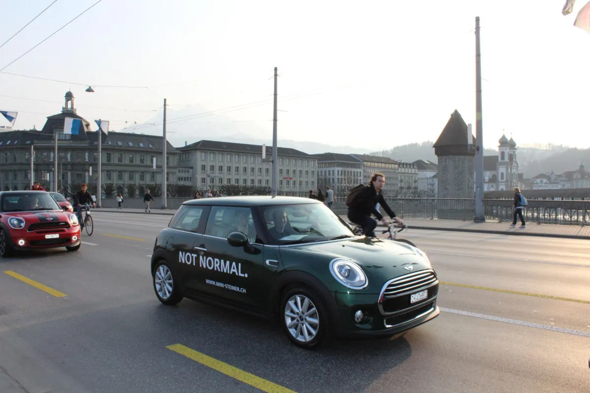 Unser Promotionsteam ist mit 8 MINI’s in der City Luzern unterwegs und sorgt für einen gelungenen und wirkungsvollen Auftritt.